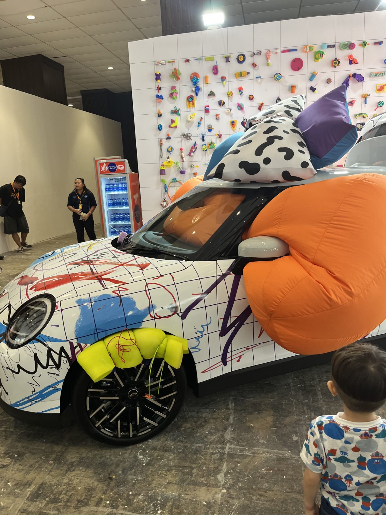 今回も子ども向けワークショップ、作品制作に参加できるブースがあり、子連れでも楽しめるポイントが少し増えていた。とはいえ子連れはまだまだ少ないが、ウェルカムな雰囲気はさすがインドネシア。小さな子を連れていても、見ていってと声をかけてもらえる。