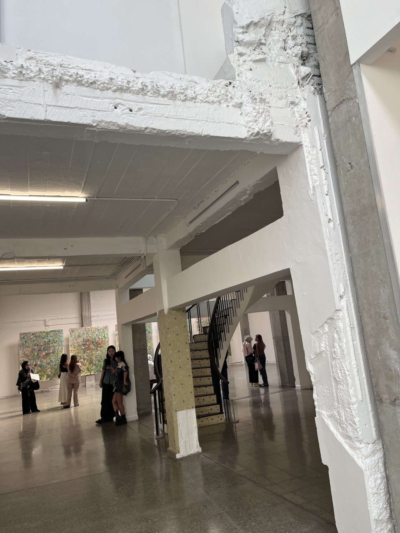 こんなところにこんなにたくさんの人がいるなんて!若い人に人気の場所のようで、皆作品と一緒に楽しそうに写真を撮っていた。天井高もあり、とても気持ちのいい空間。壁や天井も剥き出しでかっこいい。広さもかなりある。