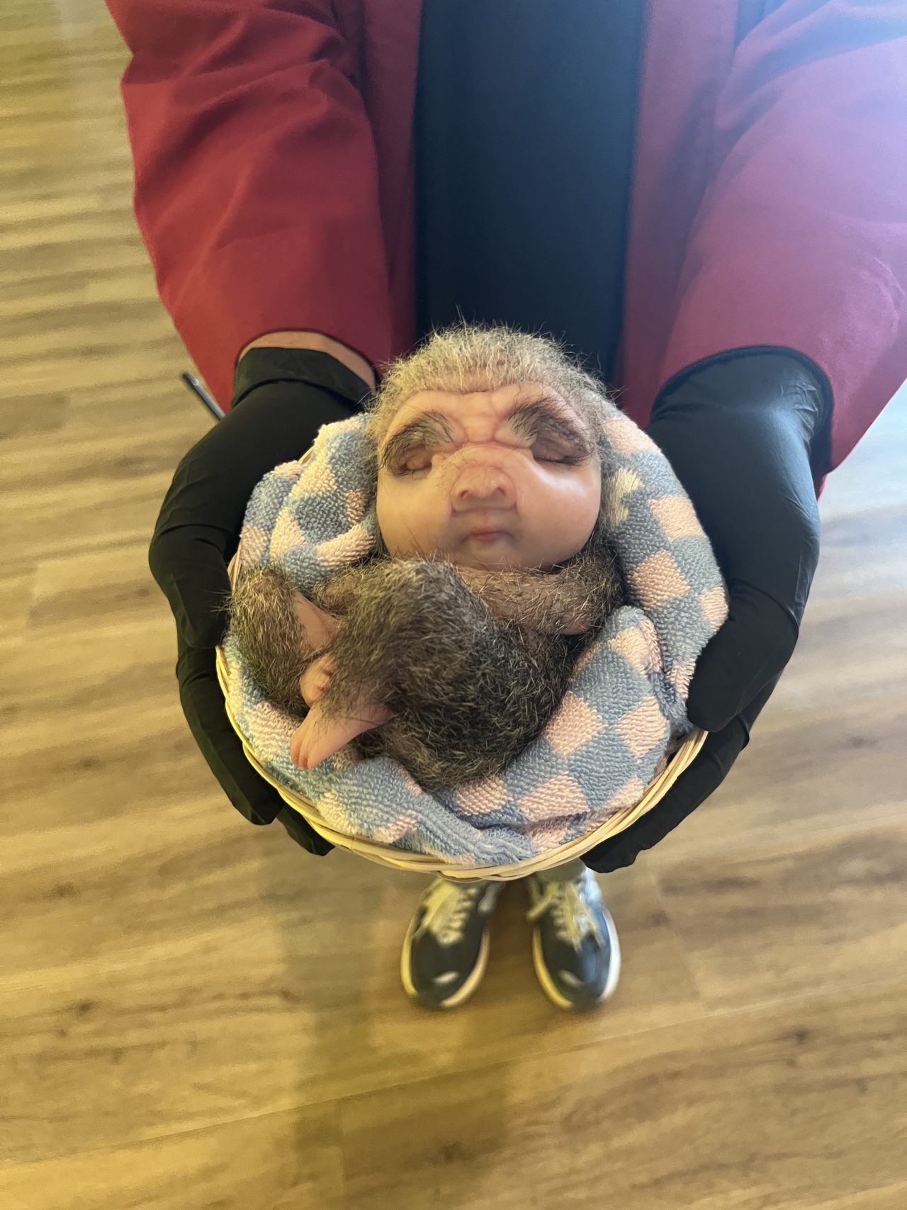 展覧会入り口では、「赤ちゃん」を抱っこさせてくれる。