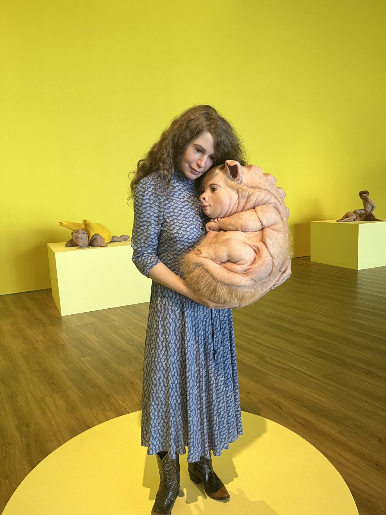 水かきがついていたり、他の動物と人間のキメラだったりするのだが、肌から透ける血管、体のシミやホクロ、肉のたるみ、体毛の毛流れ、顔の皺、目線、まつ毛や眉毛の質感。どこを取っても明らかに「生き物」である。あり得ない細さの手足や形、複数の乳房や体の器官があっても、あまりにその一つ一つがリアルを伴っていて、説得力がある。息子の様子を見るに、これら作品を「変」とは思っていない。これは何の生き物?という疑問も無さそう。そのままその通りに受け取っていた感じがする。自分とは違うかもしれないけれど、目で見たまま、何の違和感もなく受け入れている感じがした。