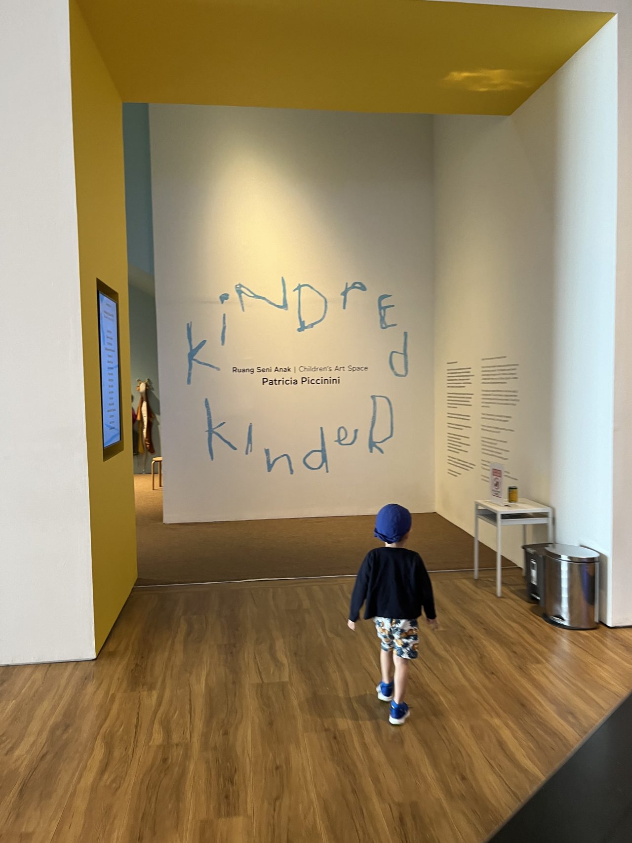 息子は最近、自分より小さな子を構いたがるので、いそいそと赤ちゃんを抱っこしている美術館のお兄さんに近づき、自分もとジェスチャーで伝えて抱っこさせてもらっていた。おっかなびっくりではあったけれど、眠っている「赤ちゃん」を起こさないように、小さな声で「ねんねんねん」と言いながら抱っこしていた。絶対に生きていると思っている。特に何の動物の赤ちゃんかはさほど気にしていないようだ。「赤ちゃんが寝ているから優しくする」ただそれだけの様子が面白い。